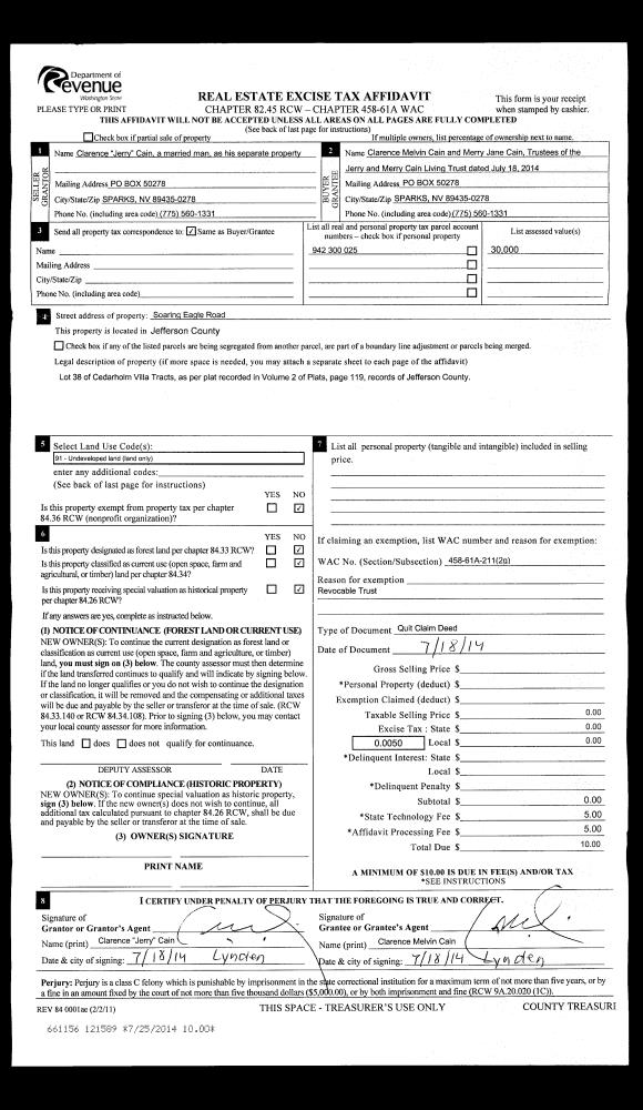 | 1 | 04/21/2015 | QCD | Quit Claim Deed | KEVIN D FELIX | KEVIN DALE FELIX LIVING TRUST | | | | 123117 | |