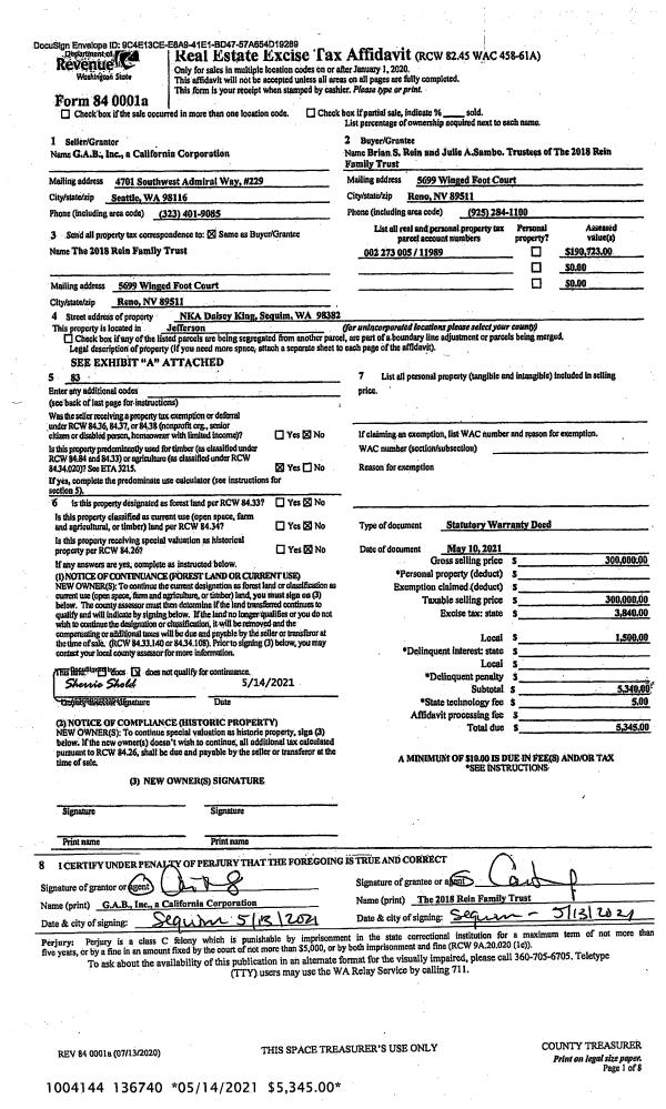 | 1 | 05/07/2019 | SWD | Statutory Warranty Deed | LEO TREMBLAY | ARTHUR LEACH | | | $30,000.00 | 132312 | |