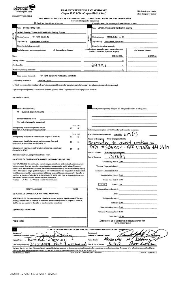 | 1 | 08/16/2017 | PRD | Personal Representatives Deed | CHRIS W DITLEFSEN | MARK E DITLEFSEN | | | | 128325 | |