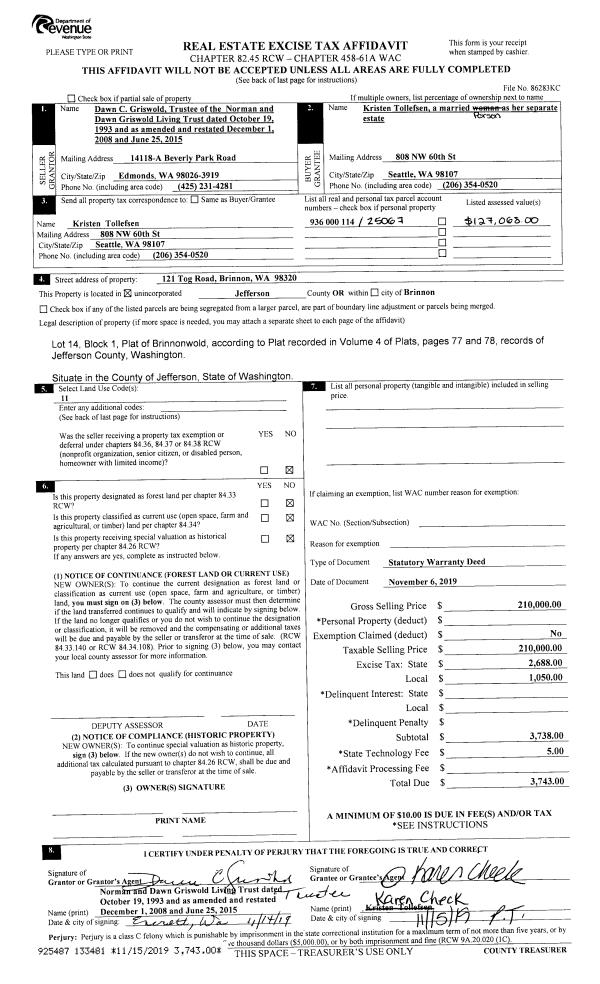 | 3 | 02/28/2016 | SWD | Statutory Warranty Deed | KIT M SWANBERG | THOMAS G TUNGSVIK | | | $23,500.00 | 124935 | |