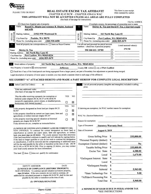 | 1 | 08/19/2020 | SWD | Statutory Warranty Deed | JULIA SORENSEN | CHRISTOPHER E SIMPSON | | | $65,000.00 | 134909 | |