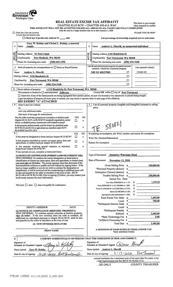 | 1 | 11/22/2020 | QCD | Quit Claim Deed | DAN R SWEETSER | DAN SWEETSER JR | | | | 135732 | |