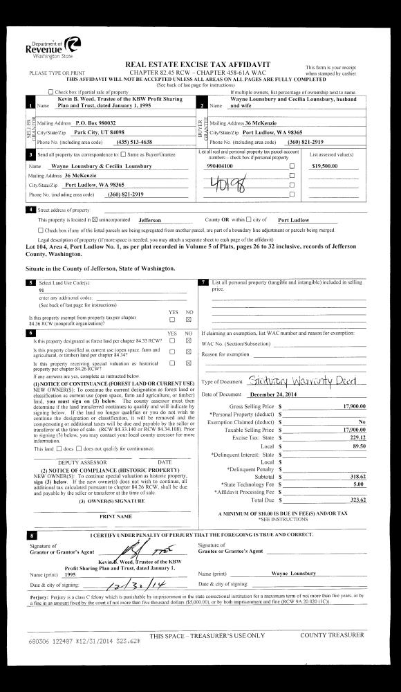 | 3 | 10/21/2002 | SWD | Statutory Warranty Deed | WALKER, GARY W/SUSAN M | LAWRENCE/FITZSIMMONS ET AL | 0 | 0 | $7,000.00 | 95826 | 0 |
