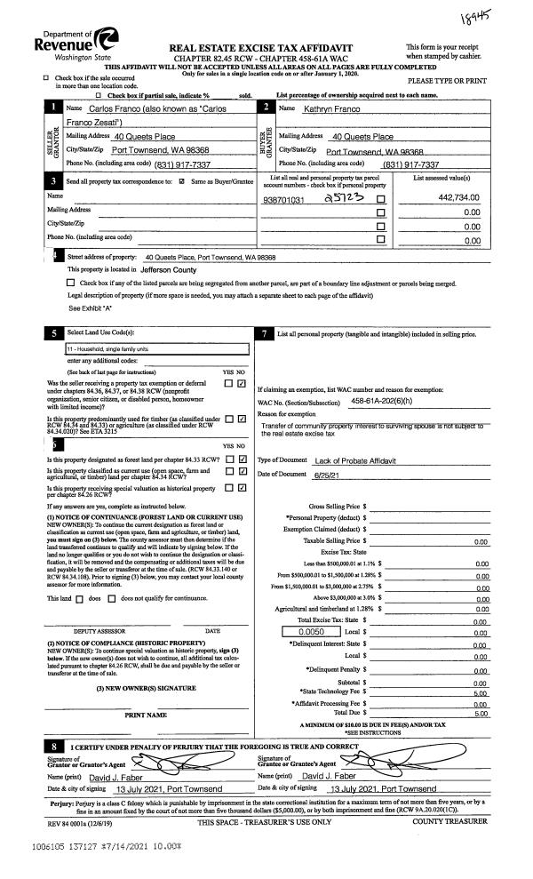 | 1 | 05/10/2000 | REC | Real Estate Contract | JOHNSTON, SHERRI M | LOW, JASON/DORINE | 0 | 0 | $18,000.00 | 89681 | 0 |