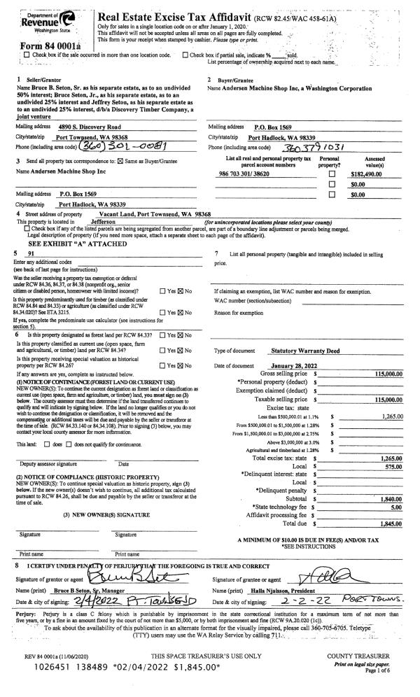 | Mailing Address: | 86 SIERRA DR SEQUIIM, WA 98382-7490 | % Ownership: | 100.0000000000% |