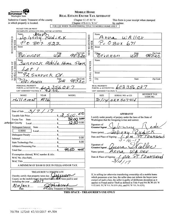 | Name: | KIRT E HANNEM JR & JILL K HANNEM | Owner ID: | 107758 |