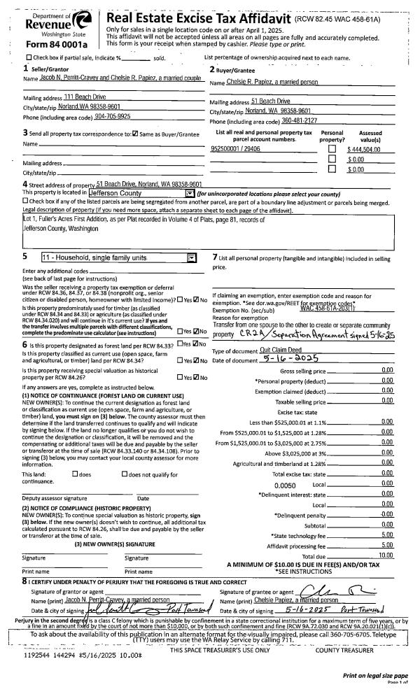 | 1 | 07/02/2025 | QCD | Quit Claim Deed | JEFFERY J MALMGREN | JEFFERY J MALMGREN | | | | 144524 | |