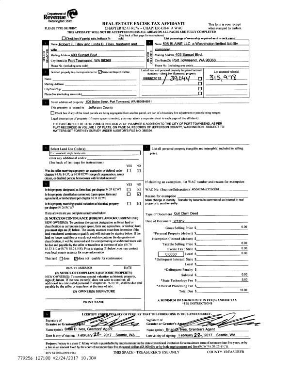| 2 | 07/13/2017 | QCD | Quit Claim Deed | | | | | | 128503 | |