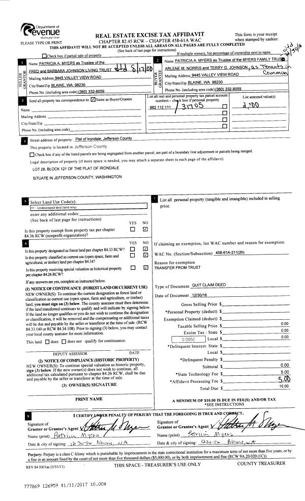 | 1 | 09/11/2017 | QCD | Quit Claim Deed | | | | | | 128861 | |