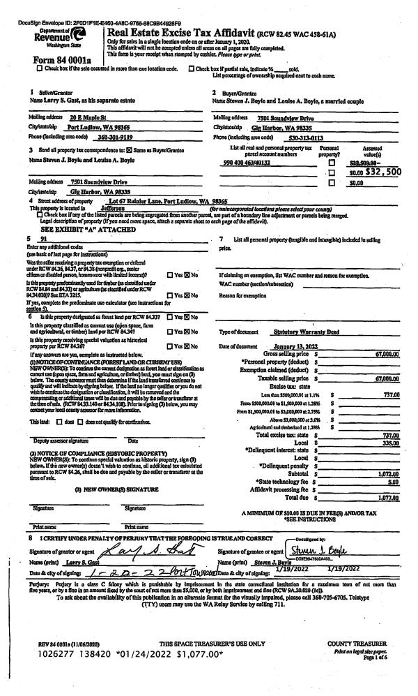| 5 | 05/23/1997 | REC | Real Estate Contract | BERGSTROM, ROGER L/LUELLA | TANASSE, THOMAS G/OWNBY, JOYCE | 0 | 0 | $0.00 | 82028 | 0 |