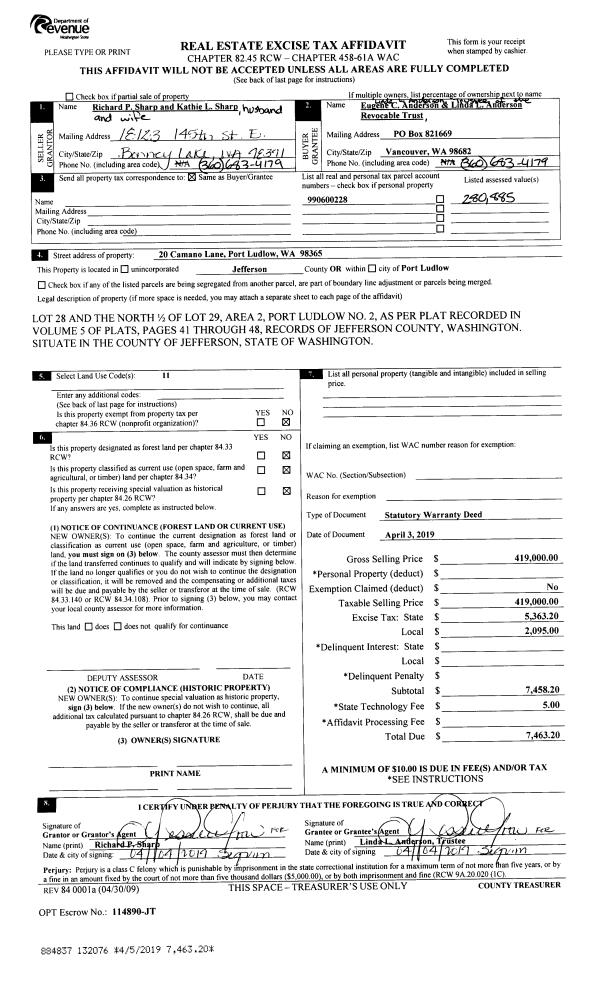 | 7 | 10/31/2002 | REC | Real Estate Contract | FAIRBANKS, DAVID A/CAROLY | JULSON, ERIC | 0 | 0 | $17,500.00 | 95909 | 0 |