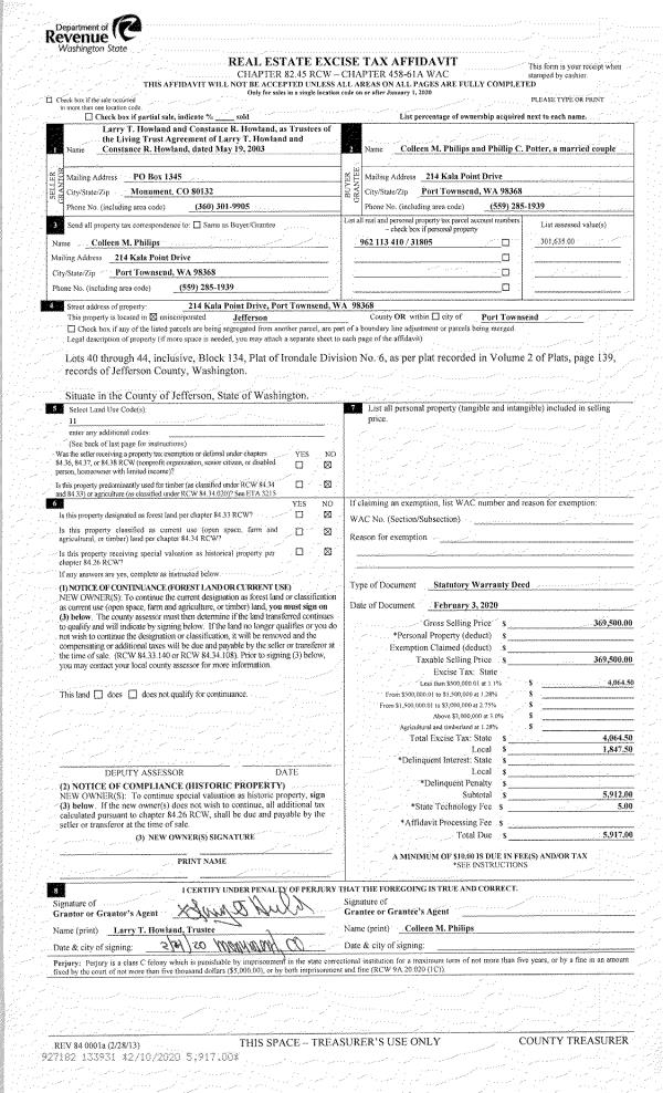 | 3 | 10/14/2020 | SWD | Statutory Warranty Deed | | | | | | 135387 | |