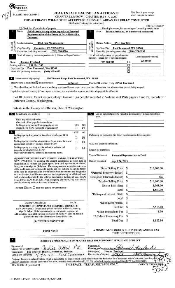 | 1 | 05/23/2022 | SWD | Statutory Warranty Deed | ALVIN DUCATT | HOLLAND E & JUSTIN R EBERHART | | | $350,000.00 | 139158 | |