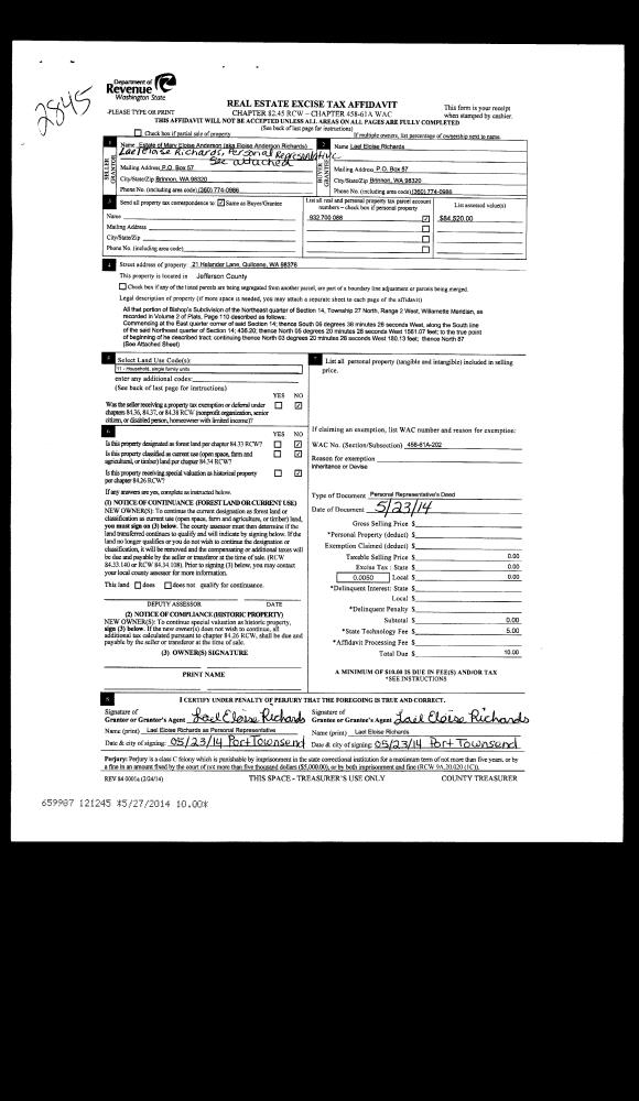 | 3 | 10/06/2015 | REC | Real Estate Contract | WADE R JOHNSTON | JUDITH SWISHER | | | $38,000.00 | 124121 | |