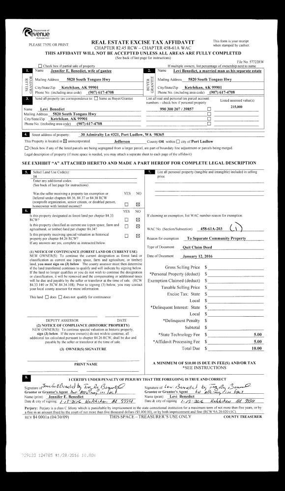 | Mailing Address: | 35 E FIR ST PORT LUDLOW, WA 98365-9741 | % Ownership: | 100.0000000000% |
