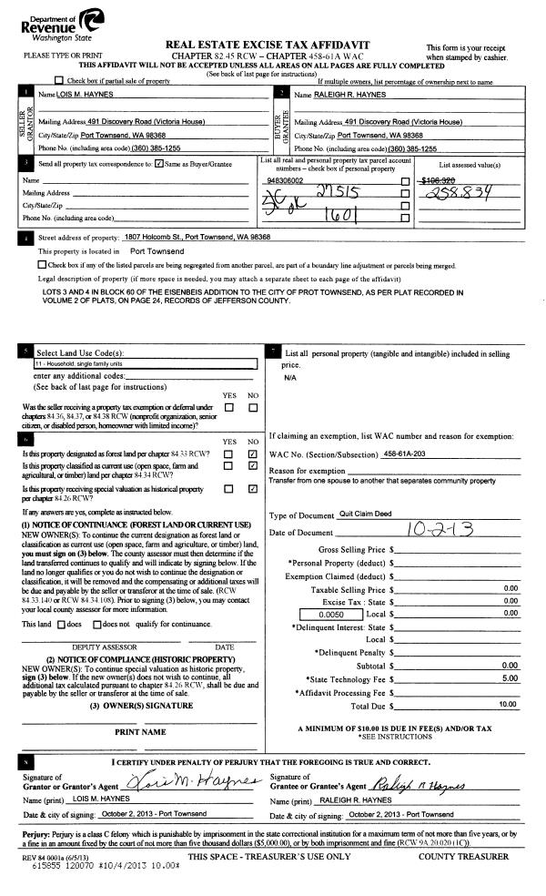 | 2 | 12/07/2015 | QCD | Quit Claim Deed | | | | | | 124822 | |