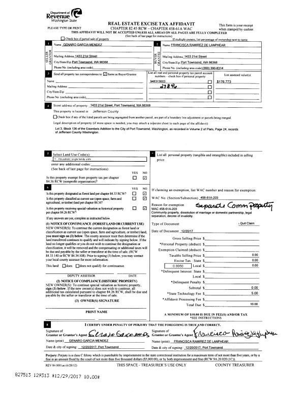 | 3 | 07/01/2016 | SWD | Statutory Warranty Deed | PAMELA I MILLER | LUANN M SMITH | | | $65,000.00 | 125778 | |