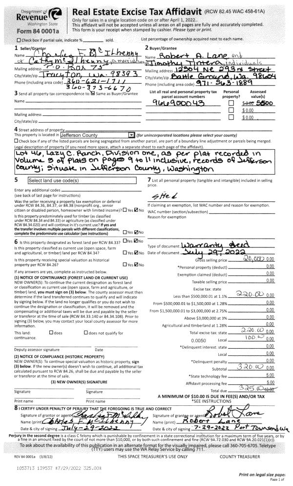 | 1 | 08/23/2022 | SWD | Statutory Warranty Deed | JOE & DIANE CARTER | JUDITH MCKENNA & ARNOLD DONOVAN | | | $255,000.00 | 139692 | |