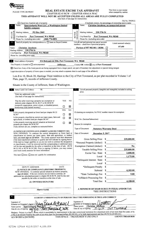 | 2 | 05/14/2018 | SWD | Statutory Warranty Deed | LYNNE POSER | JOE & KATHARINE WHITBECK | | | $60,000.00 | 130165 | |