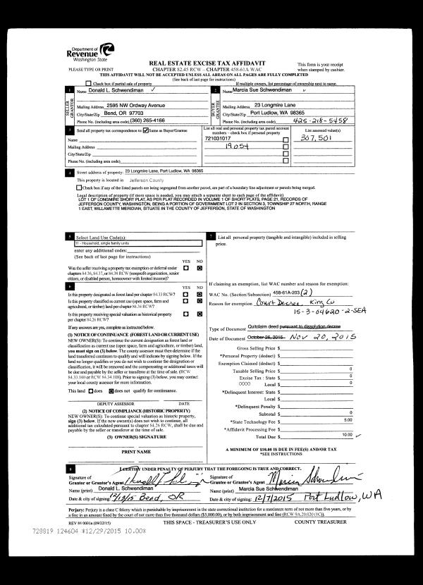 | Mailing Address: | RITA L DALY WHITE 46 VILLAGE WAY PMB 177 PORT LUDLOW, WA 98365 | % Ownership: | 100.0000000000% |