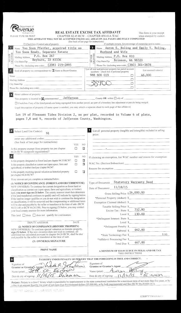 | Mailing Address: | 140 CONDON LN PORT LUDLOW, WA 98365 | % Ownership: | 100.0000000000% |