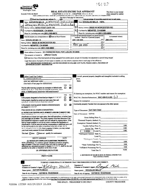 | 1 | 11/30/2021 | QCD | Quit Claim Deed | RICHARD A WITTE | WITTE LIVING TRUST | | | | 138308 | |