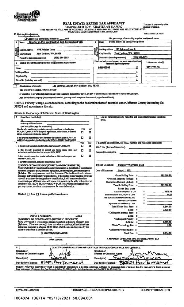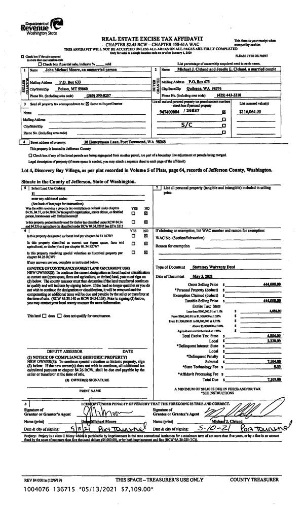 | 3 | 12/06/2005 | SWD | Statutory Warranty Deed | HUEBNER, LEROY E ESTATE O | HENNESSY, DANIEL & LINDA | 0 | 0 | $255,000.00 | 105537 | 0 |