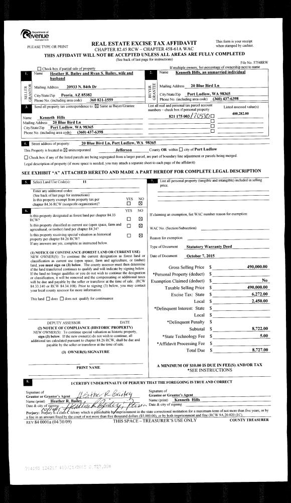 | Mailing Address: | 50 PINE ST PORT LUDLOW, WA 98365-9636 | % Ownership: | 100.0000000000% |