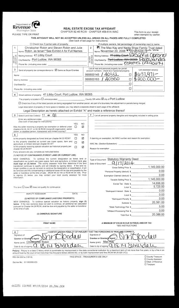 | Mailing Address: | 152 W MAPLE ST PORT LUDLOW, WA 98365-9268 | % Ownership: | 100.0000000000% |