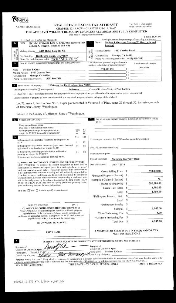 | Mailing Address: | PO BOX 65067 PORT LUDLOW, WA 98365-0067 | % Ownership: | 100.0000000000% |