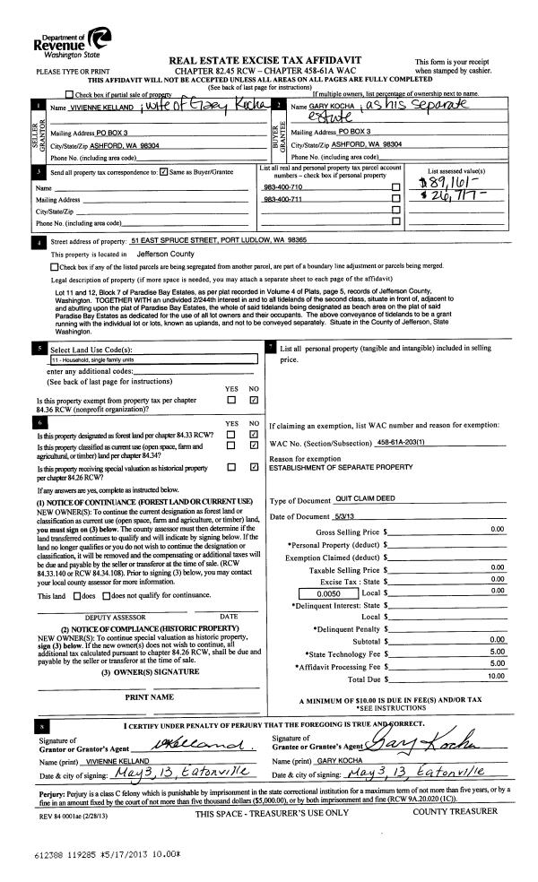 | Mailing Address: | VIRGINIA M KUDRITZKI 5257 36TH AVE NE SEATTLE, WA 98105-3127 | % Ownership: | 100.0000000000% |