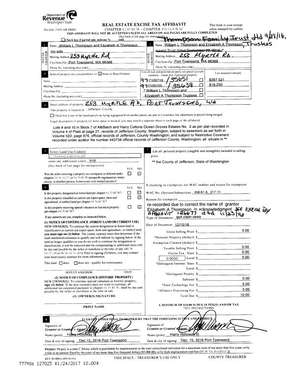 | 6 | 12/28/2017 | REC | Real Estate Contract | JOHN CURL & CHRISTINE THOMPSON | MONIQUE D & JEREMY J PYLES | | | $200,000.00 | 129302 | |