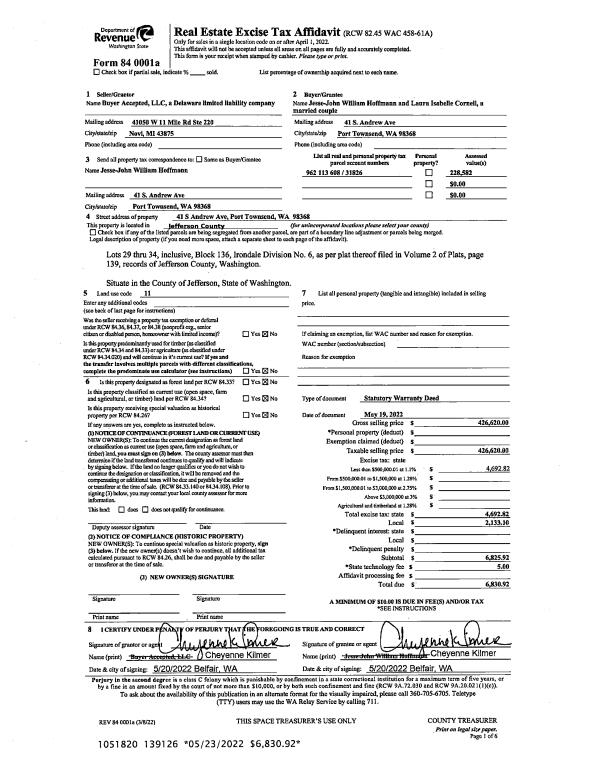 | 5 | 12/28/2017 | REC | Real Estate Contract | | | | | | 129401 | |