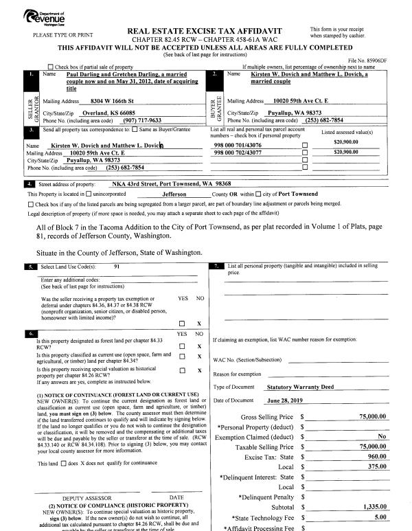 | 1 | 04/20/2020 | SWD | Statutory Warranty Deed | DONKUN L CHUNG | MICHAEL O SHANNON | | | $50,000.00 | 134277 | |