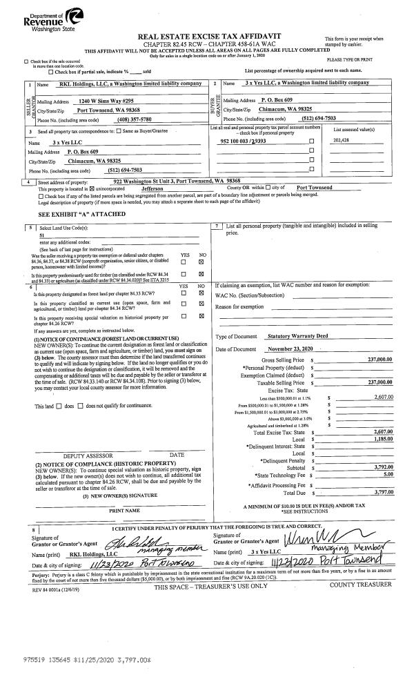 | Mailing Address: | 813 52ND ST PORT TOWNSEND, WA 98368-1509 | % Ownership: | 100.0000000000% |