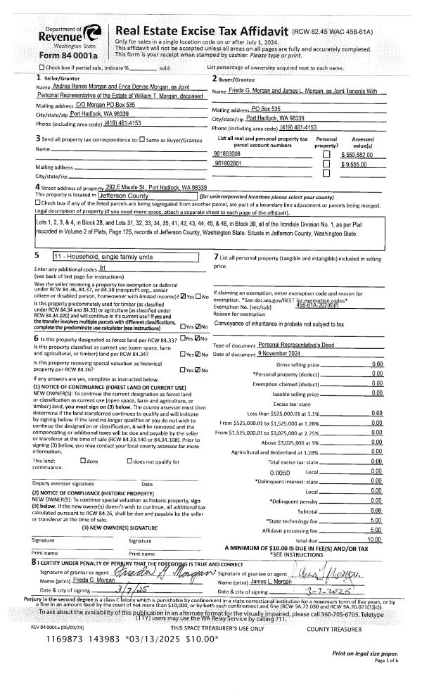 | Mailing Address: | MARK SATTERFIELD TRUSTEE MICHELLE LANGTON TRUSTEE 930 ROOSEVELT ST PORT TOWNSEND, WA 98368-5425 | % Ownership: | 100.0000000000% |