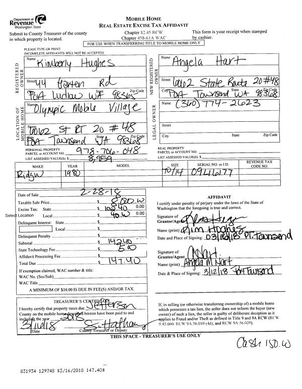 | Mailing Address: | 832 ROSE ST PORT TOWNSEND, WA 98368-5115 | % Ownership: | 100.0000000000% |