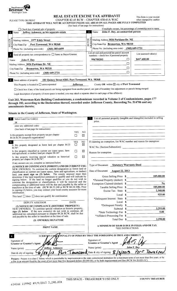 | Mailing Address: | WILLIAM PATRIC 712 H ST PORT TOWNSEND, WA 98368-5218 | % Ownership: | 100.0000000000% |