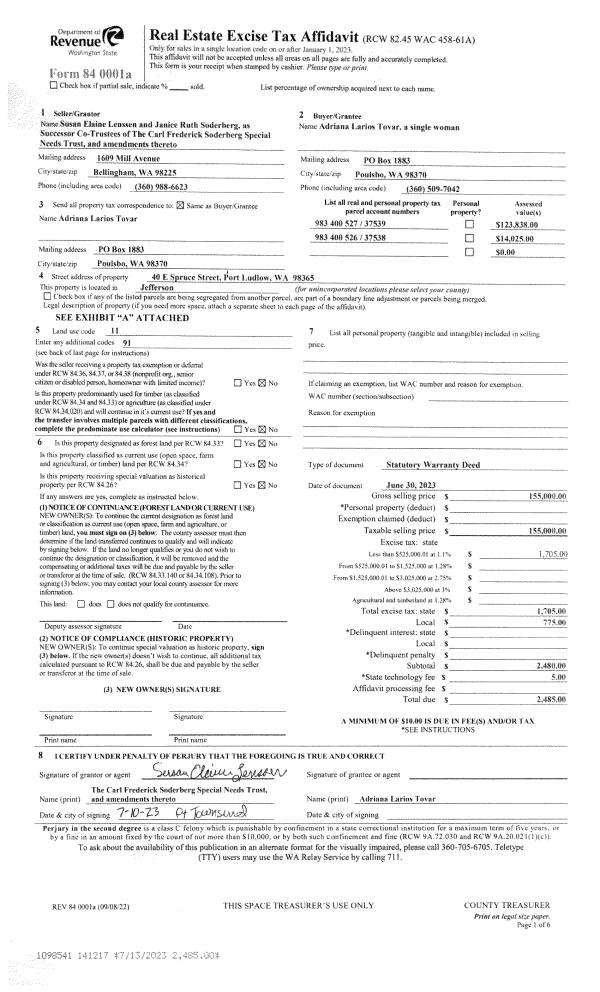 | Mailing Address: | 1318 25TH ST PORT TOWNSEND, WA 98368-7153 | % Ownership: | 100.0000000000% |