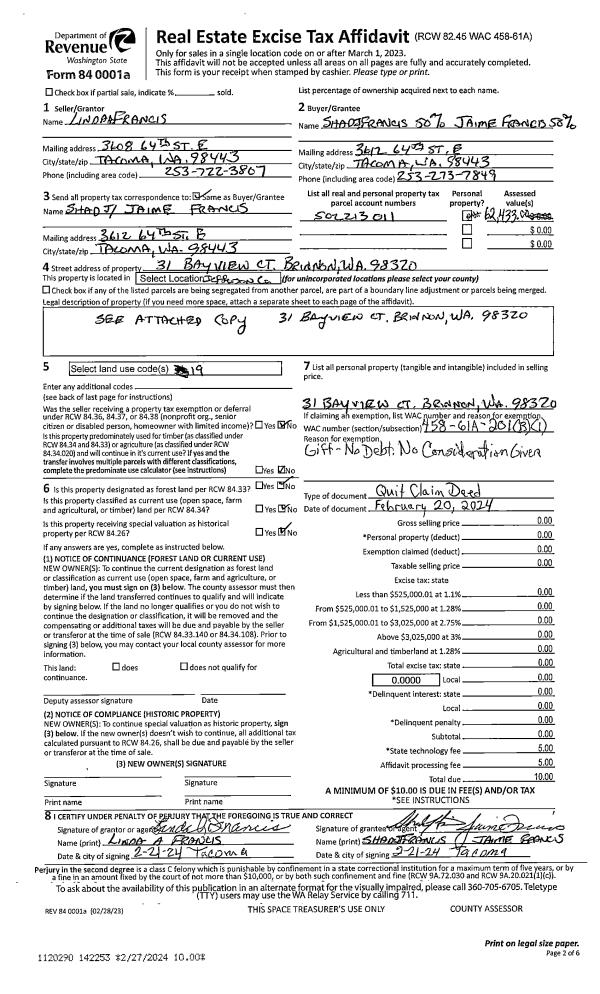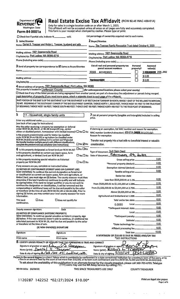 | Mailing Address: | 1030 WILLOW ST PORT TOWNSEND, WA 98368 | % Ownership: | 100.0000000000% |