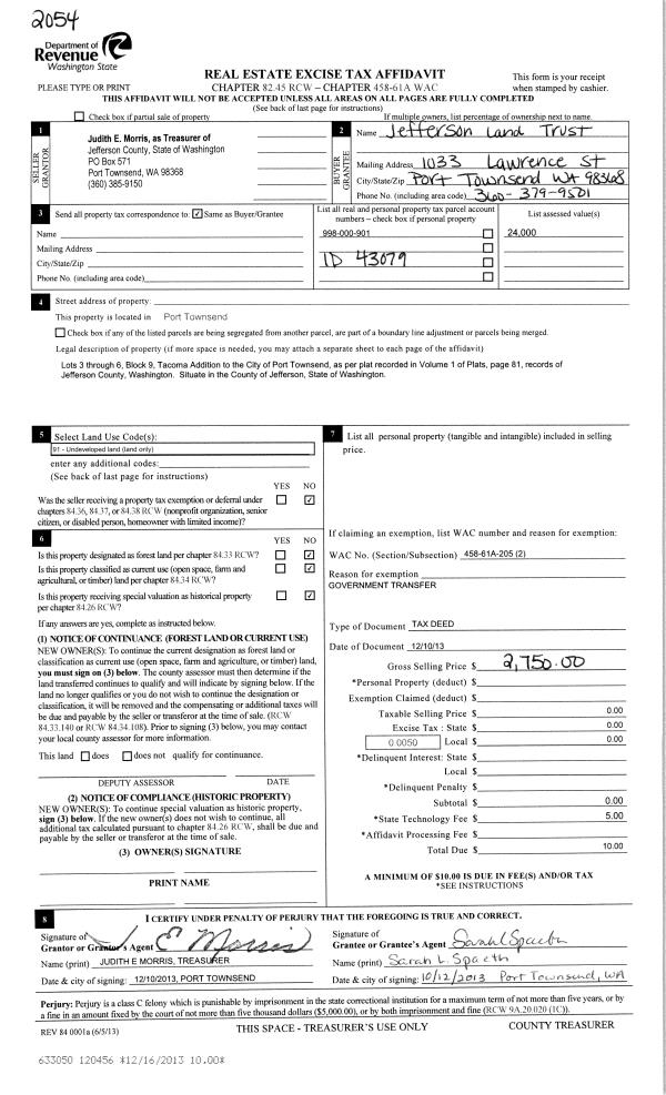 | Mailing Address: | 1174 MAPLE ST PORT TOWNSEND, WA 98368-4119 | % Ownership: | 100.0000000000% |