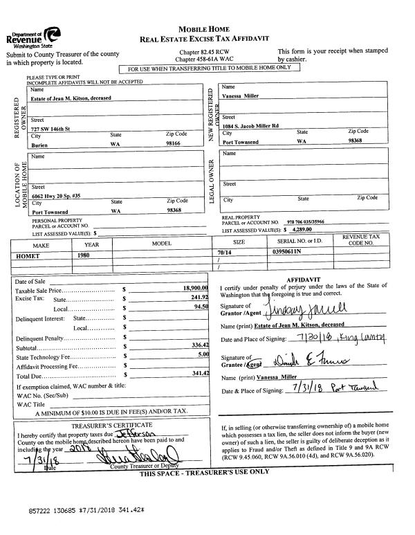 | Mailing Address: | 402 M ST PORT TOWNSEND, WA 98368-3709 | % Ownership: | 100.0000000000% |