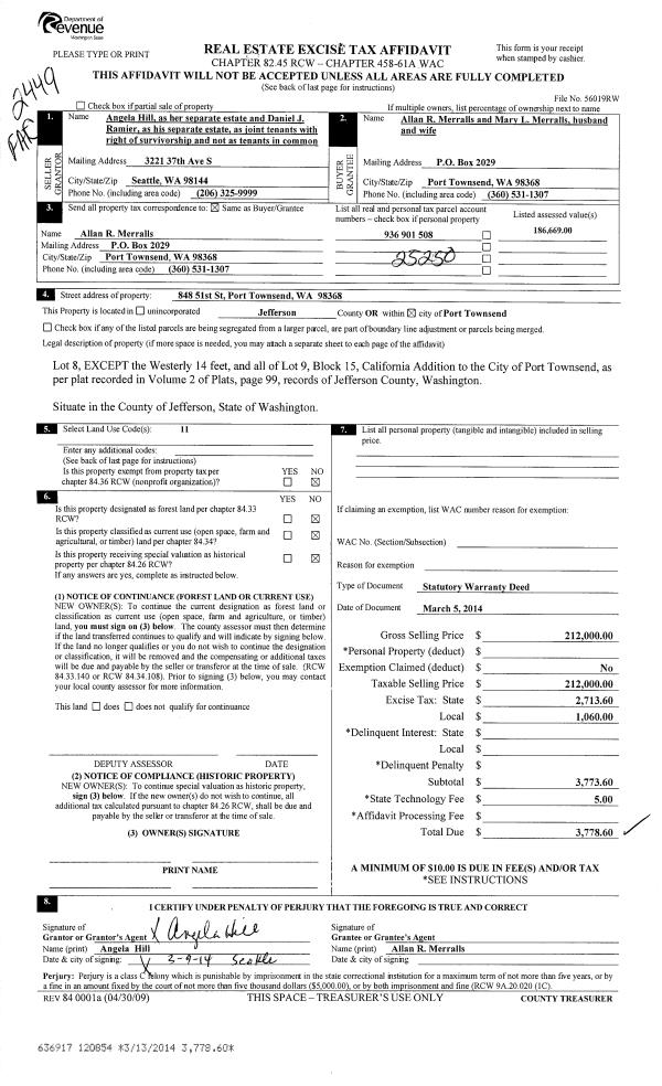 | 1 | 07/01/2015 | SWD | Statutory Warranty Deed | STEPHANIE LUTGRING | IRVINE FAMILY LIVING TRUST | | | $130,000.00 | 123502 | |