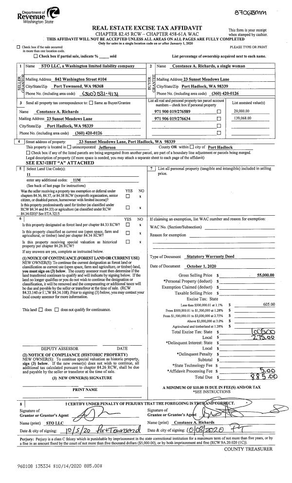 | Mailing Address: | 1240 W SIMS WAY # 129 PORT TOWNSEND, WA 98368-3058 | % Ownership: | 100.0000000000% |