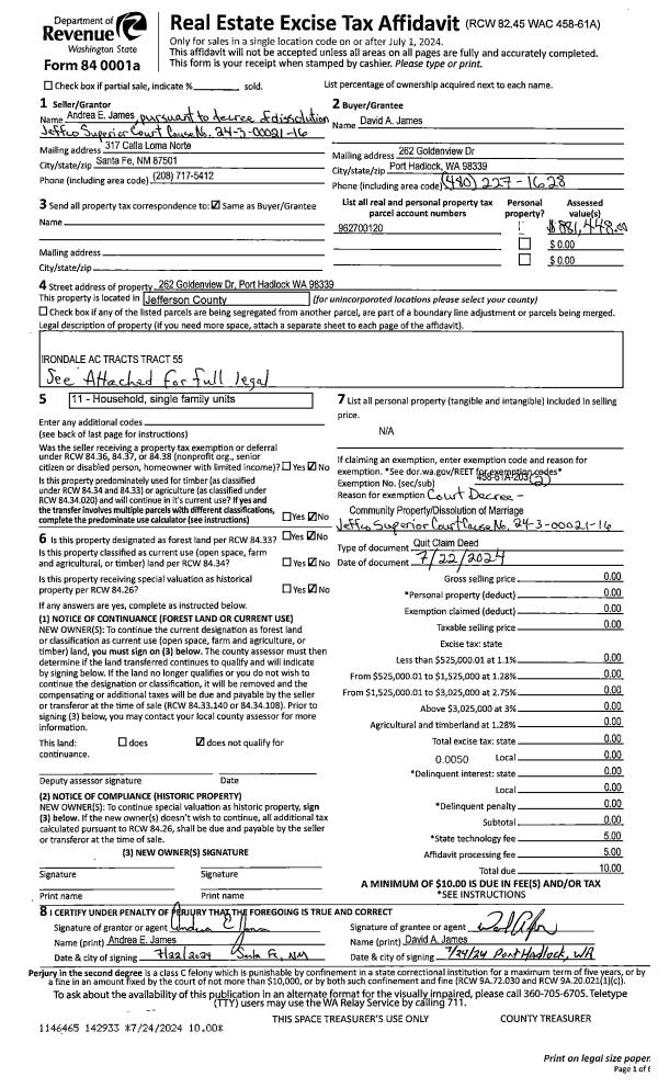 | 1 | 11/29/2000 | QCD | Quit Claim Deed | FERRIS, JAMES P & VAN SAN | FERRIS FAMILY REVOCABLE TRUST | 0 | 0 | $0.00 | 91075 | 0 |