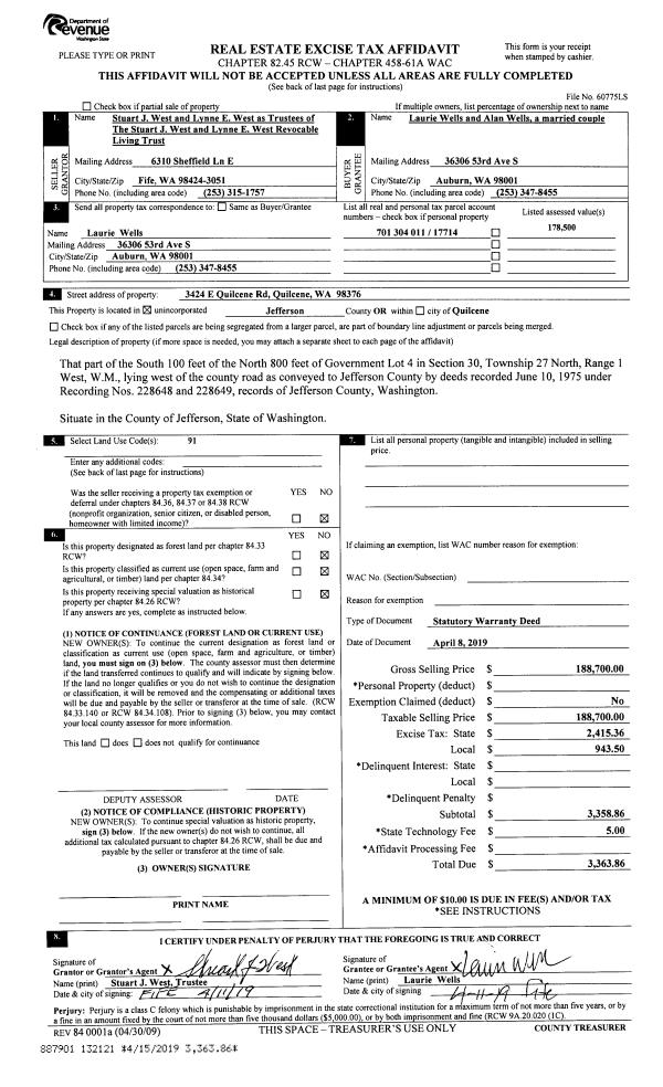 | 1 | 08/04/2023 | SWD | Statutory Warranty Deed | DOUGLAS H LA BARRE TRSTEE | IVERHUBER PROPERTIES LLC | | | $394,000.00 | 141361 | |