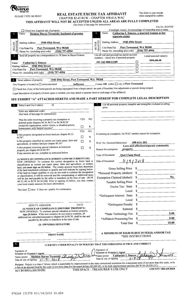 | Mailing Address: | 808 T ST PORT TOWNSEND, WA 98368-3402 | % Ownership: | 100.0000000000% |
