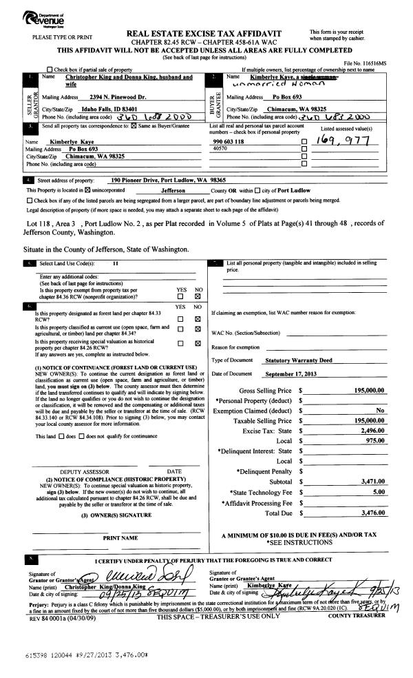 | Mailing Address: | 623 U ST PORT TOWNSEND, WA 98368-3534 | % Ownership: | 100.0000000000% |