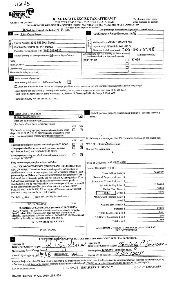 | Mailing Address: | 2014 FIR ST PORT TOWNSEND, WA 98368-3520 | % Ownership: | 100.0000000000% |