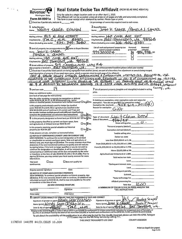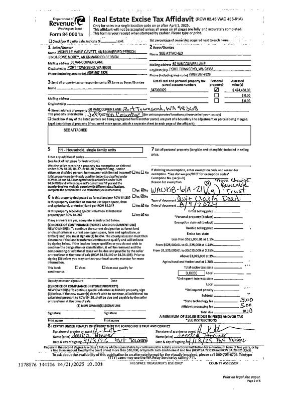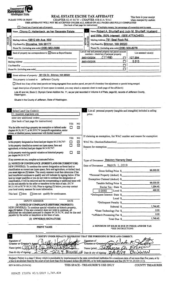 | Mailing Address: | 1412 R ST PORT TOWNSEND, WA 98368-8100 | % Ownership: | 100.0000000000% |